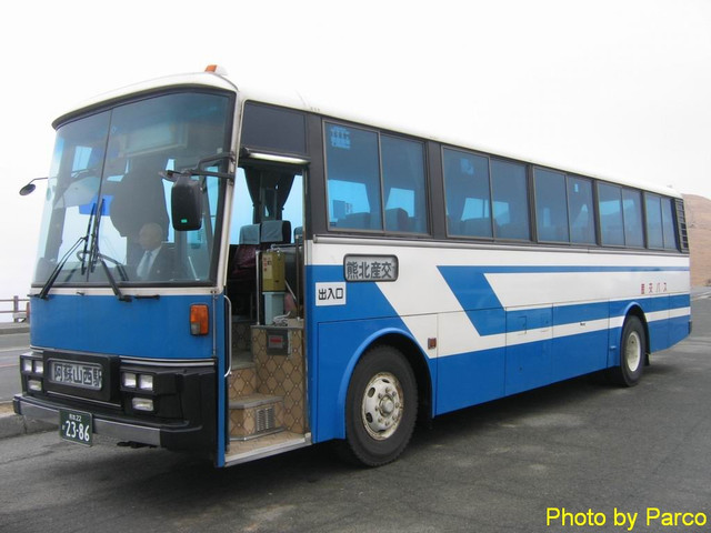 出了車站不久,開往「阿蘇火山」的巴士(熊北產交巴士)便已駛向站牌,運具間順暢的接駁,讓來訪的遊客大感放心,也不會因此浪費許多寶貴的時光。和超特急一起上車的,是來自韓國的一群高校生,幾哩呱啦著冒出超特急聽不懂得韓語,看來旅遊書上所言甚是,韓國人可是九州地區最主要的觀光客來源呢!