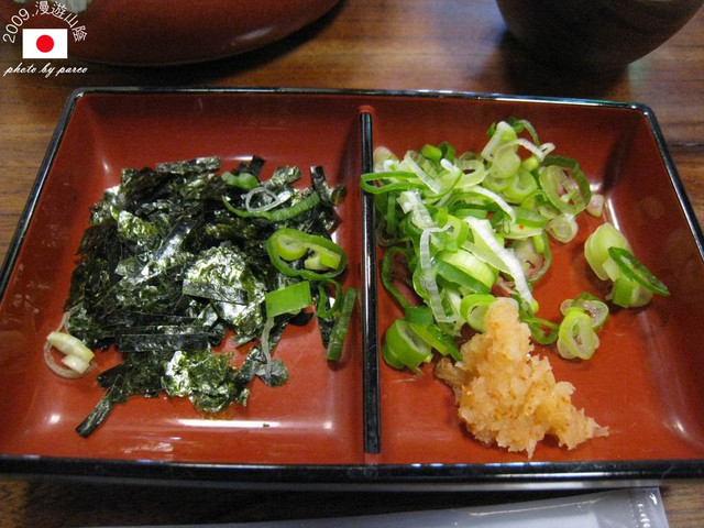 超特急依照旅遊書上介紹的吃法,首先把壺裝的醬汁倒入最上層的割子中,夾起沾滿醬汁的蕎麥麵送入口中,品嚐蕎麥的香氣與原味。緊接著在第2層的割子中,灑點蔥花或七味粉,品嚐蔥香與麵體結合的雙重奏。最後,再將調味料盤內的蘿蔔泥、海苔絲的全部倒入割子,搭配醬汁大口吸入,蘿蔔泥辛辣感讓口味更上1層。這樣的3段割子,創造出3層次口感,正是品嚐「出雲そば」的極佳方式。