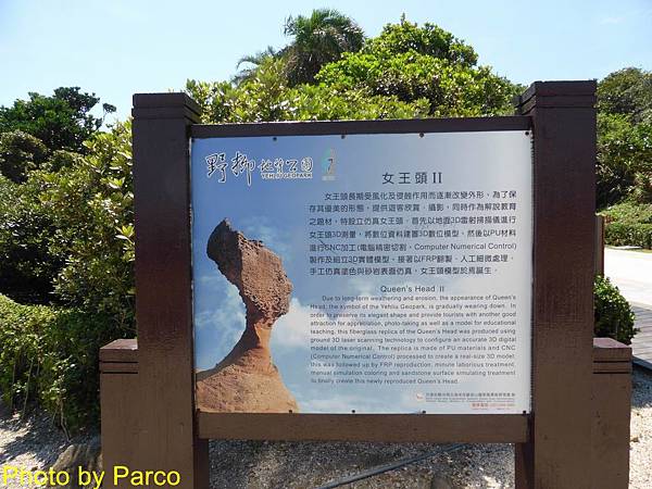 野柳最著名的景點就是公園內的「女王頭」,不過超特急記得女王頭是獨一無二的呀?!怎麼指標上標示有野柳有兩個女王頭呢?跟隨在陸客團後方的超特急,聽到導遊對團員們的解說後終於了解,原來是怕前方的女王頭本尊太過熱門,避免遊客爭相拍照大打出手,因此在前頭建置了女王頭模型,讓遊客們好好照個夠,導遊也趁此介紹女王頭的歷史,也順道提醒遊客們要遵守排隊秩序,畢竟破壞千百萬年而成的地質奇觀,可是會人神共憤,天地不容的。