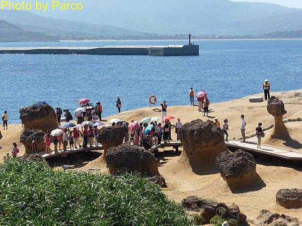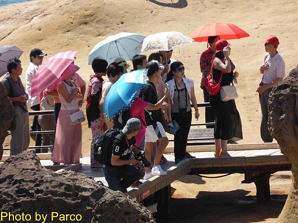 來到野柳,大家都想跟女王頭拍照,留下此行最美好的回憶,但熱門的程度可是超乎超特急想像。要排隊?沒錯!排多久?20分鐘跑不掉啦!不過有秩序的排隊是好事,畢竟等待是值得的,只不過還是有些不守規矩的遊客,硬是要違規拍照,讓維持秩序的工作人員忙得不可開交,甚至超特急在替老婆大人拍照時,還被後方的陸客催促,讓超特急哭笑不得(阿是有這麼急嗎?)。