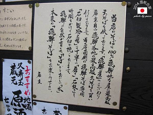 從奧飛騨溫泉鄉的「平湯溫泉」回到高山市區,品嚐了飛騨牛與朴葉味噌的美好滋味,總想來點清淡的口味,看到站前的蕎麥麵店名稱,是店名與地名相同「飛騨」,超特急直覺「就是它啦!」。