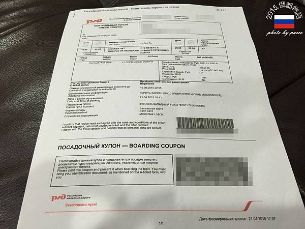 考量經濟情況,超特急選擇的是2人1室的1等艙,附加早餐,訂位時選擇的代號是「1Э」,每人票價是6,345盧布(約台幣3,757元),當然如果預算許可的話,還可以選擇附有衛浴設備的1等客艙,代號則是「1A」,或是VIP等級的客艙「1H」。